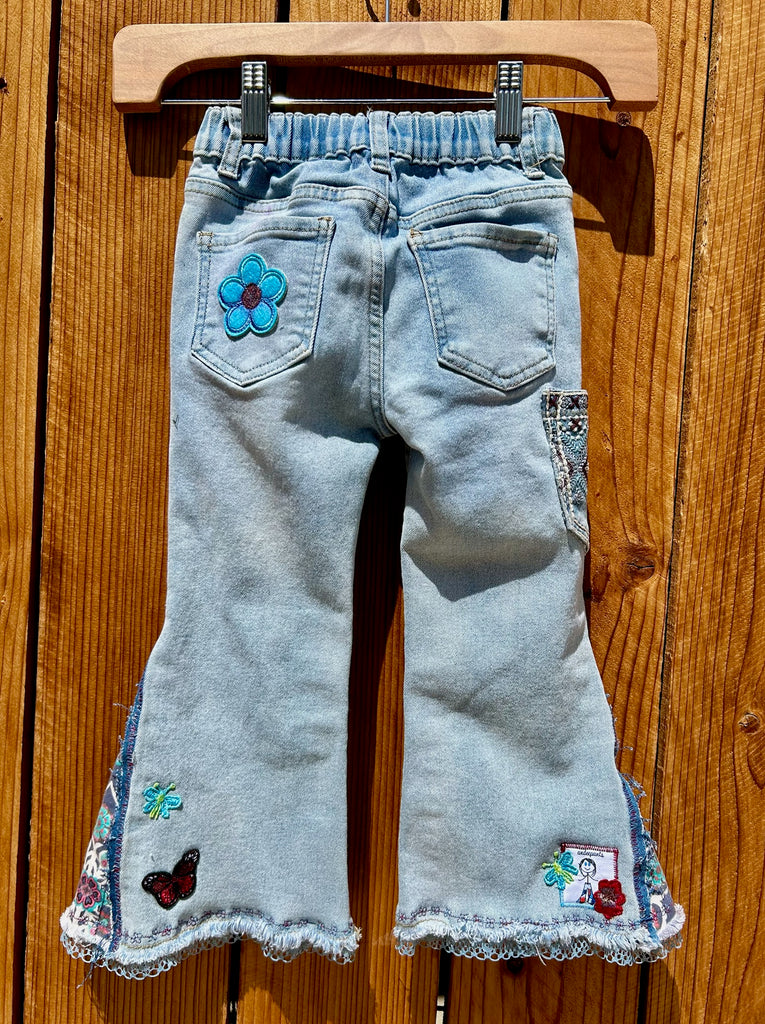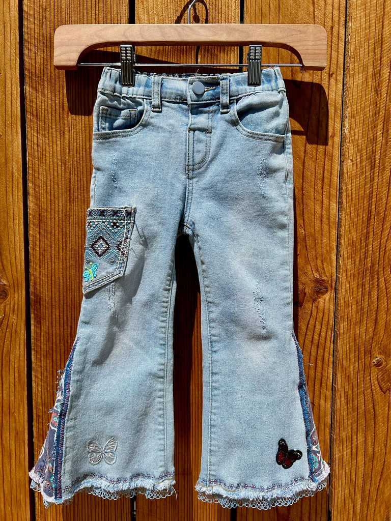 Upcycled Shein Jeans – Size 4Y – Purple Floral Flares & Butterfly Accents 🦋💜🌸✨