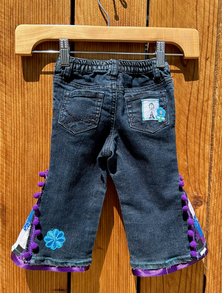 Upcycled Koala Blue Baby Jeans โ Size 12M โ Patchwork Flares & Purple Accents ๐๐ธ๐ถ